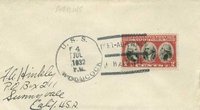 | Thumbnail Link To Cachet Close-Up Image | Thumbnail Link To Full Cover Front Image | Thumbnail Link To Postmark or Back Image | Primary Date Postmark Type Killer Bar Text --------- Cachet Category |