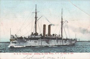 Postcard - "U.S.S. "Chattanooga" passing up East River N.Y. on way to sea"
