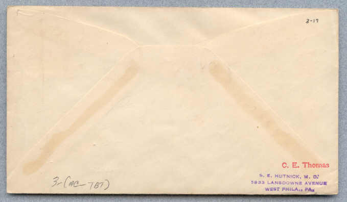Back of cover from USS Mustin DD-413 with cachet on keel laying for USS Hornet CV-8