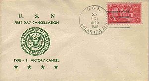 Green printed cachet actually used on Navy Day
