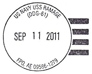 [[Image:GregCiesielski_Ramage_DDG61_20110911_2_Postmark.jpg|thumb|center|300px]] | |||