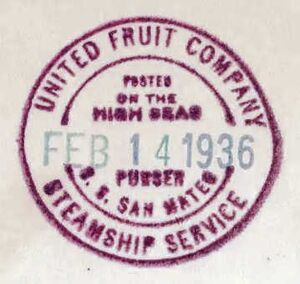 Postmark numbering system is taken from the "The United Fruit Company; The History, Ships & Cancellations of the Great White Fleet" by Philip Cockrill.