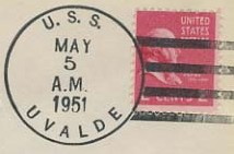 This section lists examples of the postmarks used by the ship. There should be a separate set of postmarks for each name and/or commissioning period. Within each set, the postmarks should be listed in order of their classification type. If more than one postmark has the same classification, then they should be further sorted by date of earliest known usage.