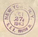 This section lists examples of the postmarks used by the ship. There should be a separate set of postmarks for each name and/or commissioning period. Within each set, the postmarks should be listed in order of their classification type. If more than one postmark has the same classification, then they should be further sorted by date of earliest known usage.
