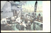 Picture postcard titled "Washing Day on board U.S. Man O'War"