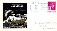 Cachet commemorates commissioning of submarines since the previous Navy Day: USS Trout SS-202, USS Tuna SS-203, USS Mackerel SS-204, USS Marlin SS-205, USS Gar SS-206, USS Grampus SS-207, USS Grayback SS-208, USS Grayling SS-209, USS Grenadier SS-210 and USS Gudgeon SS-211.