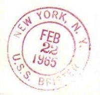 This section lists examples of the postmarks used by the ship. There should be a separate set of postmarks for each incarnation of the ship (ie, for each entry in the "Ship Name and Designation History" section). Within each set, the postmarks should be listed in order of their classification type. If more than one postmark has the same classification, then they should be further sorted by date of earliest known usage.