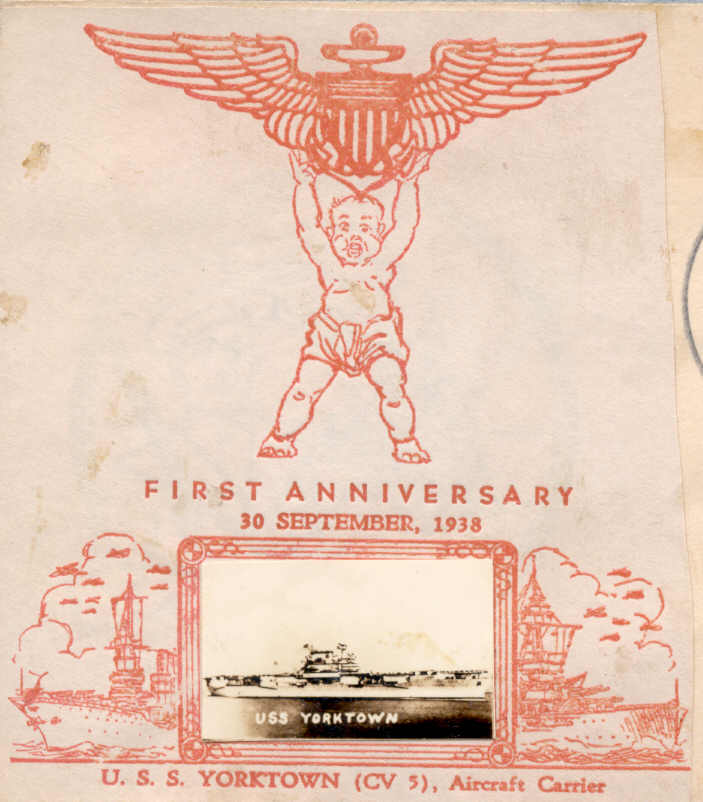 Closeup of cachet from Walter G. Crosby for anniversary of commissioning of USS Yorktown CV-5