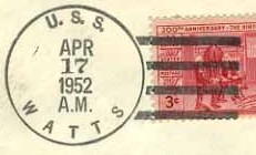 This section lists examples of the postmarks used by the ship. There should be a separate set of postmarks for each incarnation of the ship (ie, for each entry in the "Ship Name and Designation History" section). Within each set, the postmarks should be listed in order of their classification type. If more than one postmark has the same classification, then they should be further sorted by date of earliest known usage.