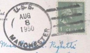 This section lists examples of the postmarks used by the ship. There should be a separate set of postmarks for each name and/or commissioning period. Within each set, the postmarks should be listed in order of their classification type. If more than one postmark has the same classification, then they should be further sorted by date of earliest known usage.