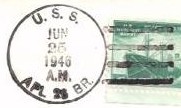 This section lists examples of the postmarks used by the ship. There should be a separate set of postmarks for each name and/or commissioning period. Within each set, the postmarks should be listed in order of their classification type. If more than one postmark has the same classification, then they should be further sorted by date of earliest known usage.