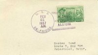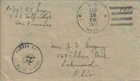 Censored wartime (WWII) use...Front typed notation "U.S.S. Selfridge"