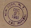 This section lists examples of the postmarks used by the ship. There should be a separate set of postmarks for each incarnation of the ship (ie, for each entry in the "Ship Name and Designation History" section). Within each set, the postmarks should be listed in order of their classification type. If more than one postmark has the same classification, then they should be further sorted by date of earliest known usage.