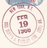 This section lists examples of the postmarks used by the ship. There should be a separate set of postmarks for each name and/or commissioning period. Within each set, the postmarks should be listed in order of their classification type. If more than one postmark has the same classification, then they should be further sorted by date of earliest known usage.