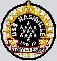 NASHVILLE earned the following awards during her Naval career - Joint Meritorious Unit Award - Navy Unit Commendation - Navy Meritorious Unit Commendation (3) - Navy Battle "E" Ribbon (3) - Navy Expeditionary Medal (3) - National Defense Service Medal - Armed Forces Expeditionary Medal (4) - Southwest Asia Service Medal - Armed Forces Service Medal - Humanitarian Service Medal.