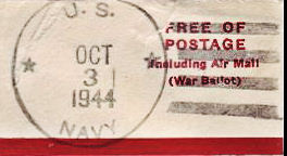WAGB-281. Official Election War Ballot envelope. Posted from another ship or station...ship did not carry this device