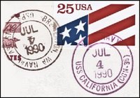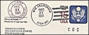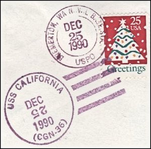 This cover is also postmarked from the USS Truxtun CGN-35, USS Nimitz CVN-68, USS Carl Vinson CVN-70, USS Camden AOE-2 and "Naval Base Station" Bremerton, WA