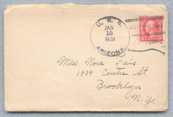 | current | 04:37, 31 October 2005 | 573 × 388 (19 KB) | NCMSysop (talk | contribs) | Cover from USS Arizona BB-39 with postmark type 3 (AC) |