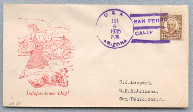 Cover from USS Arizona BB-39 with postmark type 3 (B-BBT)