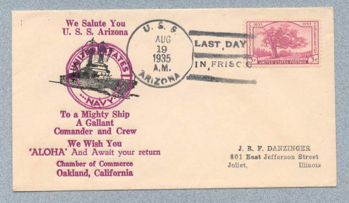 Front of cover from USS Arizona BB-39 with postmark type 3 (B-BBT)