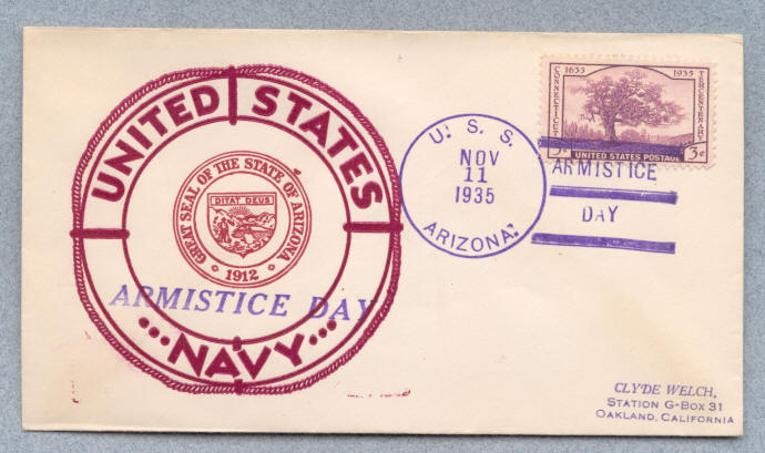 Cover from USS Arizona BB-39 with postmark type 3 (AC-TTB)