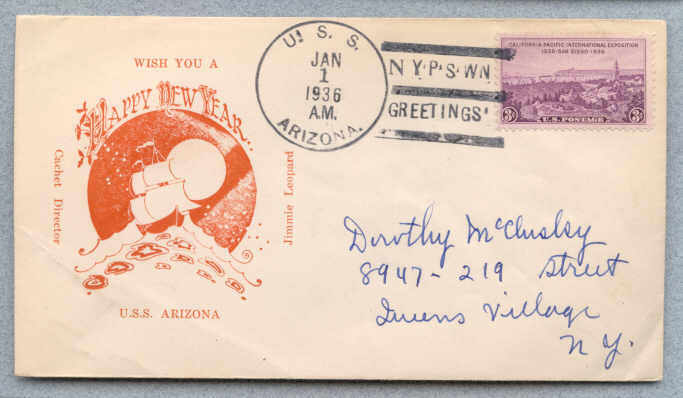 Cover from USS Arizona BB-39 with postmark type 3 (AC-TTB)