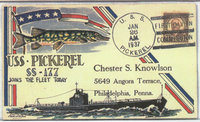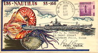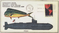 Cachetmaker Alton (Budd) M. Arrington created covers for himself, and was also one of the various artists that did artwork for the Stephen Decatur Chapter No. 4, USCS. Budd was a retired Navy Commander and served in the Submarine Service during WWII and his love of submarines is shown through his incredible artwork. In 1983, Budd created a series of covers for the 52 submarines that cruise our oceans “On Eternal Patrol” and these covers are shown on page 3 and 4. The majority of the covers illustrated are from Budd’s original artwork and not from the actual covers themselves. These submarine covers are arranged in hull designation sequence starting on page 6.