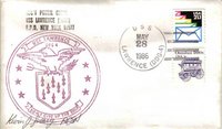 Note: Front black rubberstamp return to ship at New York...Violet rubberstamp ship's crest...Pen signed Navy Postal Clerk...Back USPS routing mark (D6)...Blue rubberstamp "MAY 31 1986"