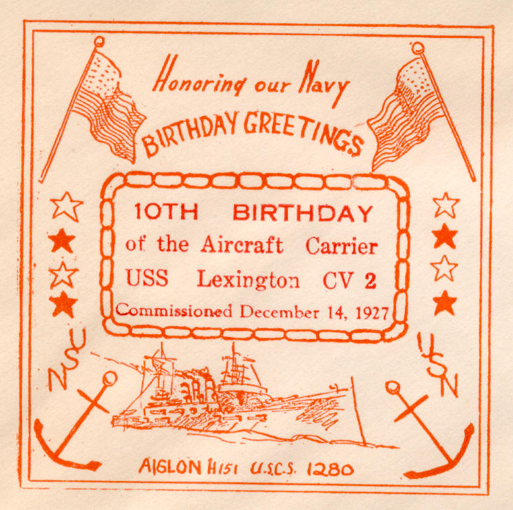 Closeup of cachet from USS Lexington CV-2. Cachet maker is Frederick Horton.