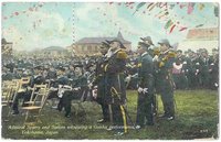 Picture postcard titled - "Admiral Sperry and Sailors witnessing a Geisha performance at Yokohama Japan"