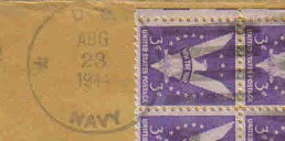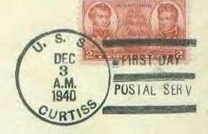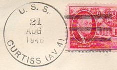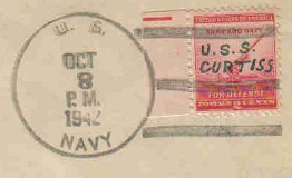 "U.S.S. CURTISS" written in pen on stamp