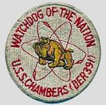 USS CHAMBERS earned the American Campaign Medal, the Asiatic-Pacific Campaign Medal, the European-Africa-Middle East Campaign Medal w/ 1 Battle star, the World War II Victory Medal and the National Defense Service Medal during her Naval career.