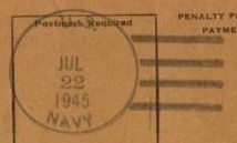 This section lists examples of the postmarks used by the ship. There should be a separate set of postmarks for each name and/or commissioning period. Within each set, the postmarks should be listed in order of their classification type. If more than one postmark has the same classification, then they should be further sorted by date of earliest known usage.