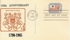 175th Anniversary of the USCG. First Day of Issue for Sc. UX52 |