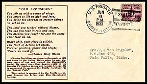Printed cachet of the poem “Old Ironsides” by Oliver Wendell Holmes