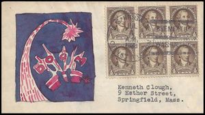 Hand drawn fireworks cachet. Independence Day. From the Tom Kean collection.
