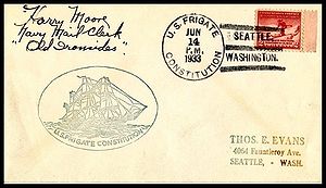 Ships cachet, autographed by Harry Moore, NMC. Flag Day.