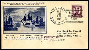 Printed cachet – “The Moonlight Battle Between the USF Constitution and the HMS Levant and Cyane”.