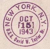 This section lists examples of the postmarks used by the ship. There should be a separate set of postmarks for each name and/or commissioning period. Within each set, the postmarks should be listed in order of their classification type. If more than one postmark has the same classification, then they should be further sorted by date of earliest known usage.