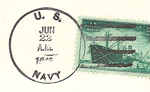 This section lists examples of the postmarks used by the ship. There should be a separate set of postmarks for each name and/or commissioning period. Within each set, the postmarks should be listed in order of their classification type. If more than one postmark has the same classification, then they should be further sorted by date of earliest known usage.