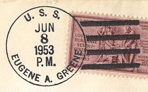 "EUGENE A. GREENE" was originally assigned to DE-549 on 28 October 1943, canceled on 10 June 1944, and reassigned to DD-711 on 10 July 1944.