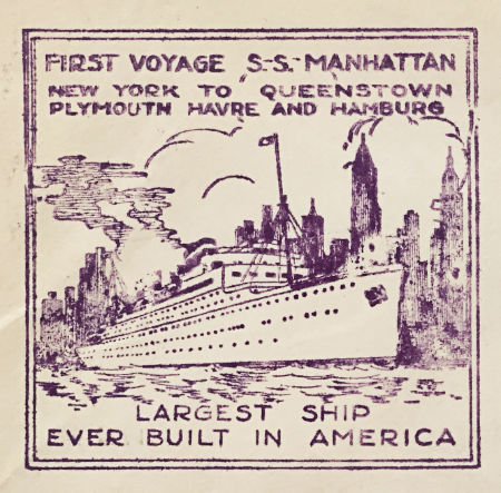 First Voyage SS Manhattan New York to Queenstown Plymouth Havre and Hamburg Largest Ship Ever Built in America