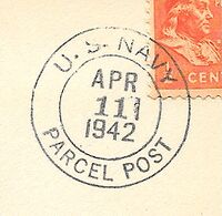 This section lists examples of the postmarks used by the ship. There should be a separate set of postmarks for each name and/or commissioning period. Within each set, the postmarks should be listed in order of their classification type. If more than one postmark has the same classification, then they should be further sorted by date of earliest known usage.