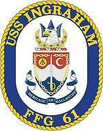 USS INGRAHAM FFG-61 earned the following awards during her Naval career - Joint Meritorious Unit Commendation Ribbon, Navy Unit Commendation Ribbon w/ 1 star, Navy Meritorious Unit Commendation Ribbon, Navy Battle "E" Ribbon (4 awards), Navy Expeditionary Medal w/ 3 stars, National Defense Service Medal w/ 1 star, Armed Forces Expeditionary Medal w/ 1 star, Southwest Asia Service Medal w/ 1 star, Global War On Terror Expeditionary Service Medal w/ 4 stars, Global War On Terror Service Medal, Sea Service Deployment Ribbon w/ 12 stars and the Kuwait Liberation Medal (Kuwait).