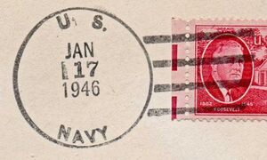 This section lists examples of the postmarks used by the ship. There should be a separate set of postmarks for each name and/or commissioning period. Within each set, the postmarks should be listed in order of their classification type. If more than one postmark has the same classification, then they should be further sorted by date of earliest known usage.