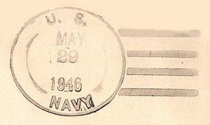 This section lists examples of the postmarks used by the ship. There should be a separate set of postmarks for each name and/or commissioning period. Within each set, the postmarks should be listed in order of their classification type. If more than one postmark has the same classification, then they should be further sorted by date of earliest known usage.