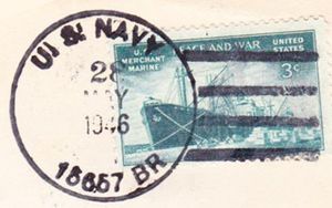 This section lists active links to the pages displaying covers associated with the ship. There should be a separate set of pages for each name of the ship (for example, Bushnell AG-32 / Sumner AGS-5 are different names for the same ship so there should be one set of pages for Bushnell and one set for Sumner). Covers should be presented in chronological order (or as best as can be determined).