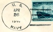This section lists examples of the postmarks used by the ship. There should be a separate set of postmarks for each name and/or commissioning period. Within each set, the postmarks should be listed in order of their classification type. If more than one postmark has the same classification, then they should be further sorted by date of earliest known usage.