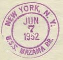This section lists examples of the postmarks used by the ship. There should be a separate set of postmarks for each name and/or commissioning period. Within each set, the postmarks should be listed in order of their classification type. If more than one postmark has the same classification, then they should be further sorted by date of earliest known usage.