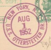 This section lists examples of the postmarks used by the ship. There should be a separate set of postmarks for each incarnation of the ship (ie, for each entry in the "Ship Name and Designation History" section). Within each set, the postmarks should be listed in order of their classification type. If more than one postmark has the same classification, then they should be further sorted by date of earliest known usage.